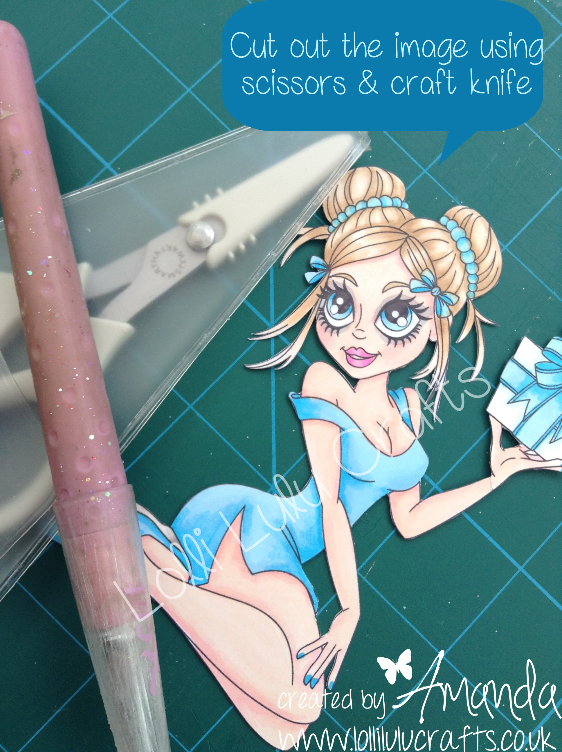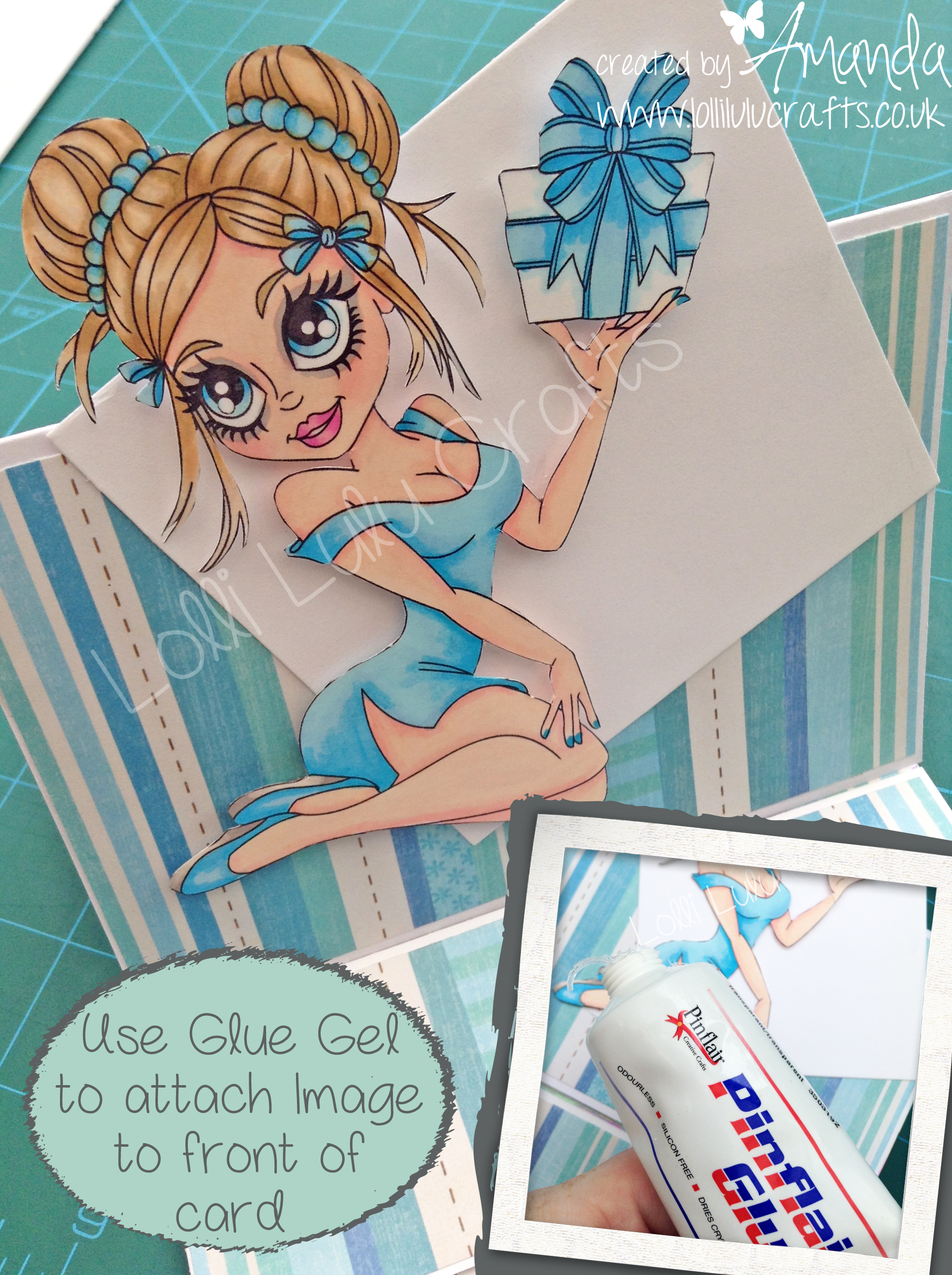 So to the project. So I started off by printing Susie on really nice card that I know works well for using my markers on. I then coloured her in using the colours as shown in the photo. Then I started working on the card itself and today instead of doing all the chatter here, I put the ‘how to’ on the actual photos. Also don’t forget that if you click on the photos you will get large, super-sizied and slideshow 🙂