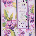 So I printed out the backing papers and also there was a sheet of toppers that included the sentiment as a feature so I printed that out as well. I then simply took a Hunkydory piece of lilac card stock, folded that in half with the colour on the outside for a change. I then cut my backing paper to fit the A5 card front less 1/4″ and stick that down on the front of our card. Then I simply cutout my sentiment topper, matted and layered that onto some lilac, white, then silver mirri card. Finally I added some lilac crystal stickles to my sentiment topper as a little added extra.