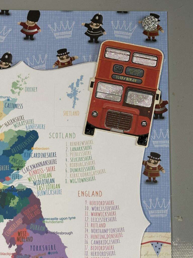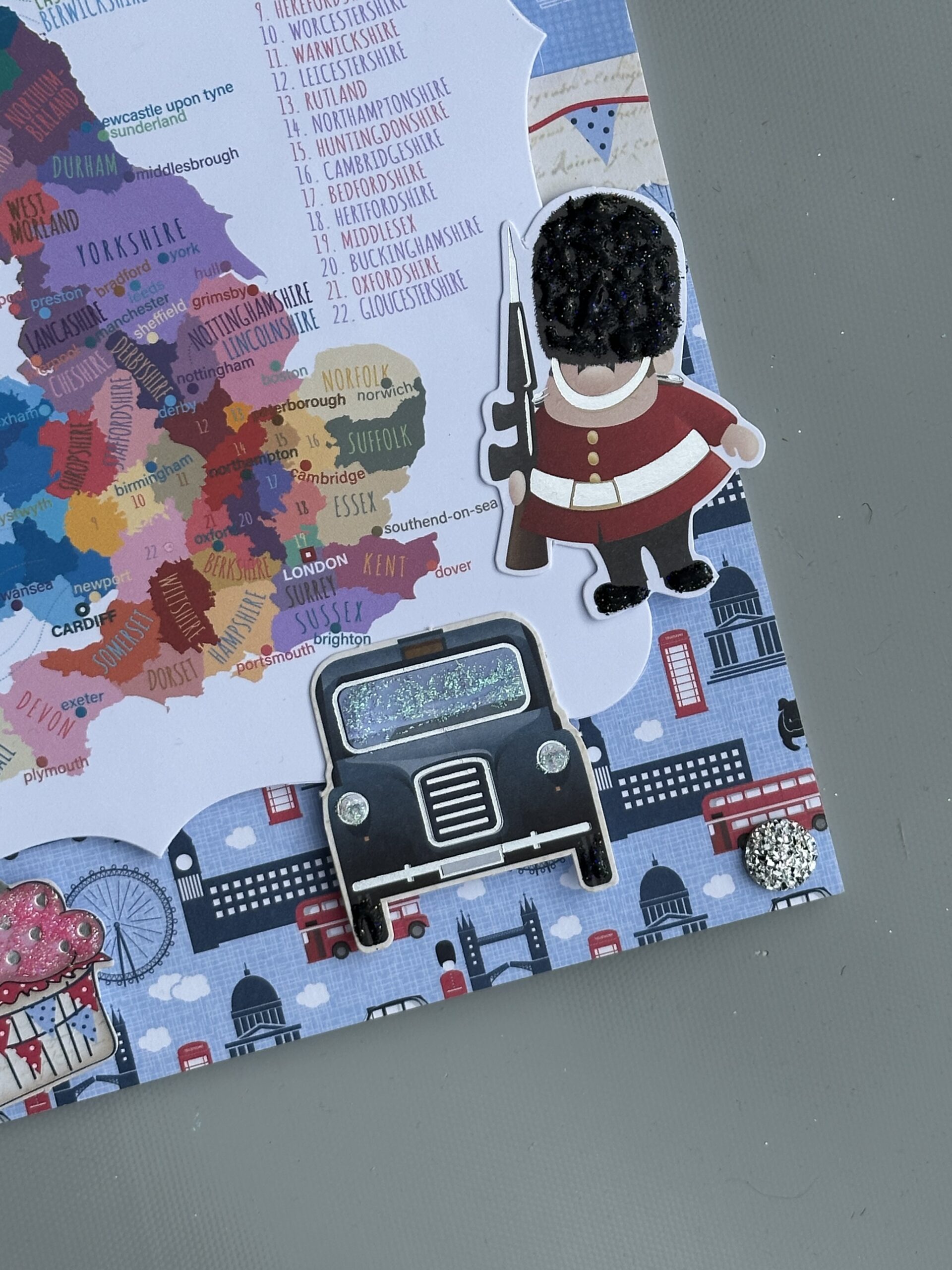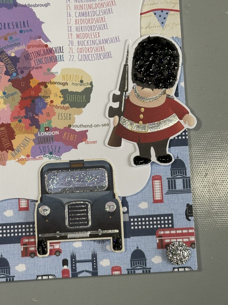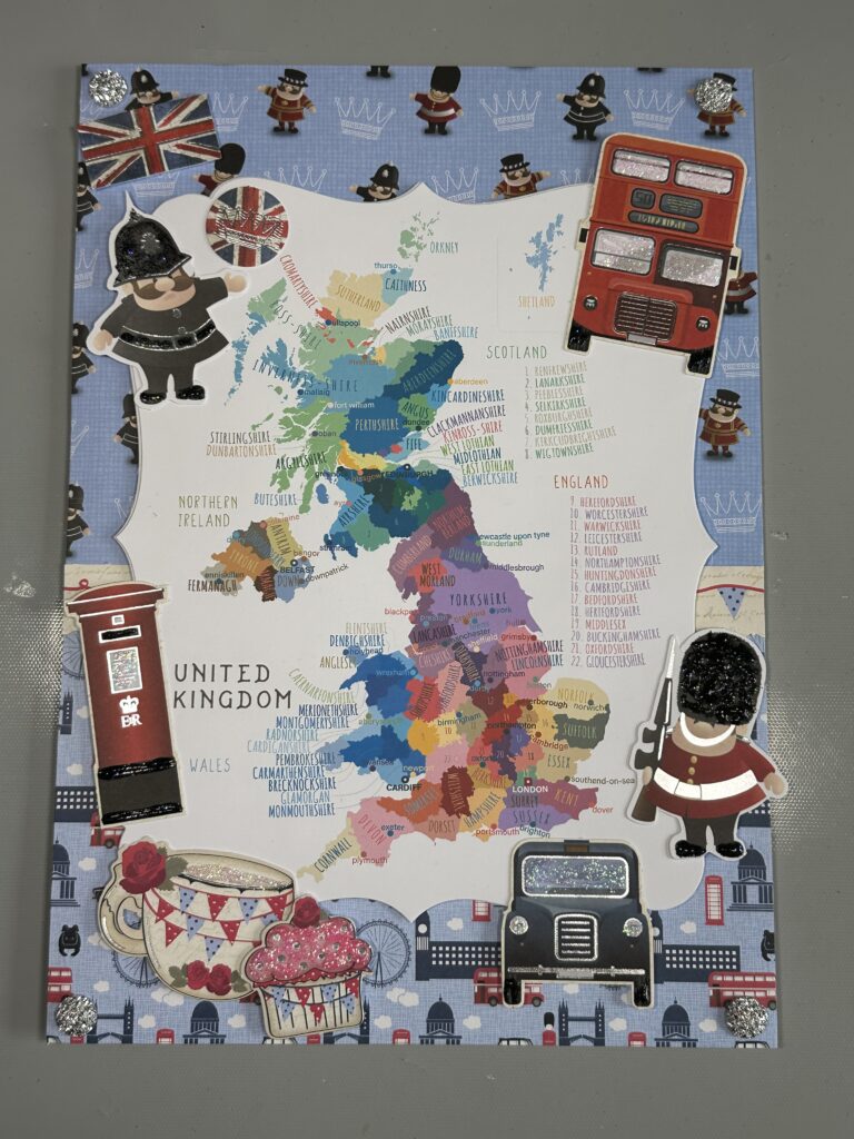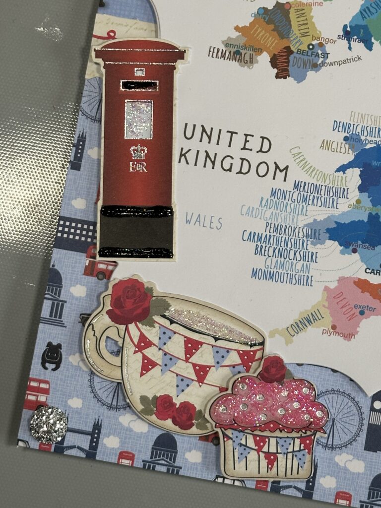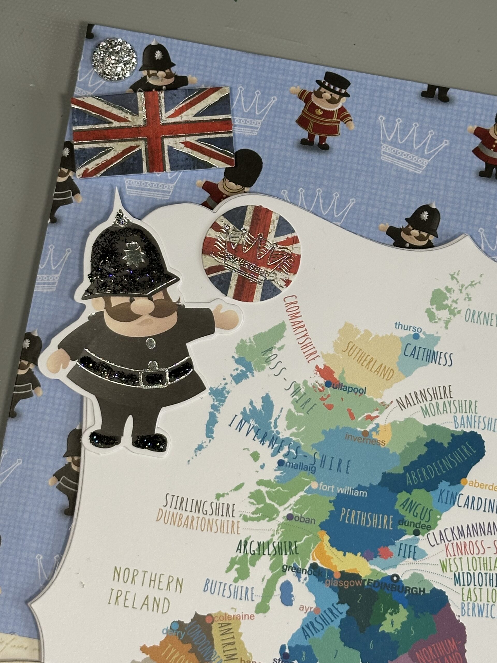 Hiya, todays cards a request I had for a very specific card that was to feature a UK map and other stereo typical UK things.